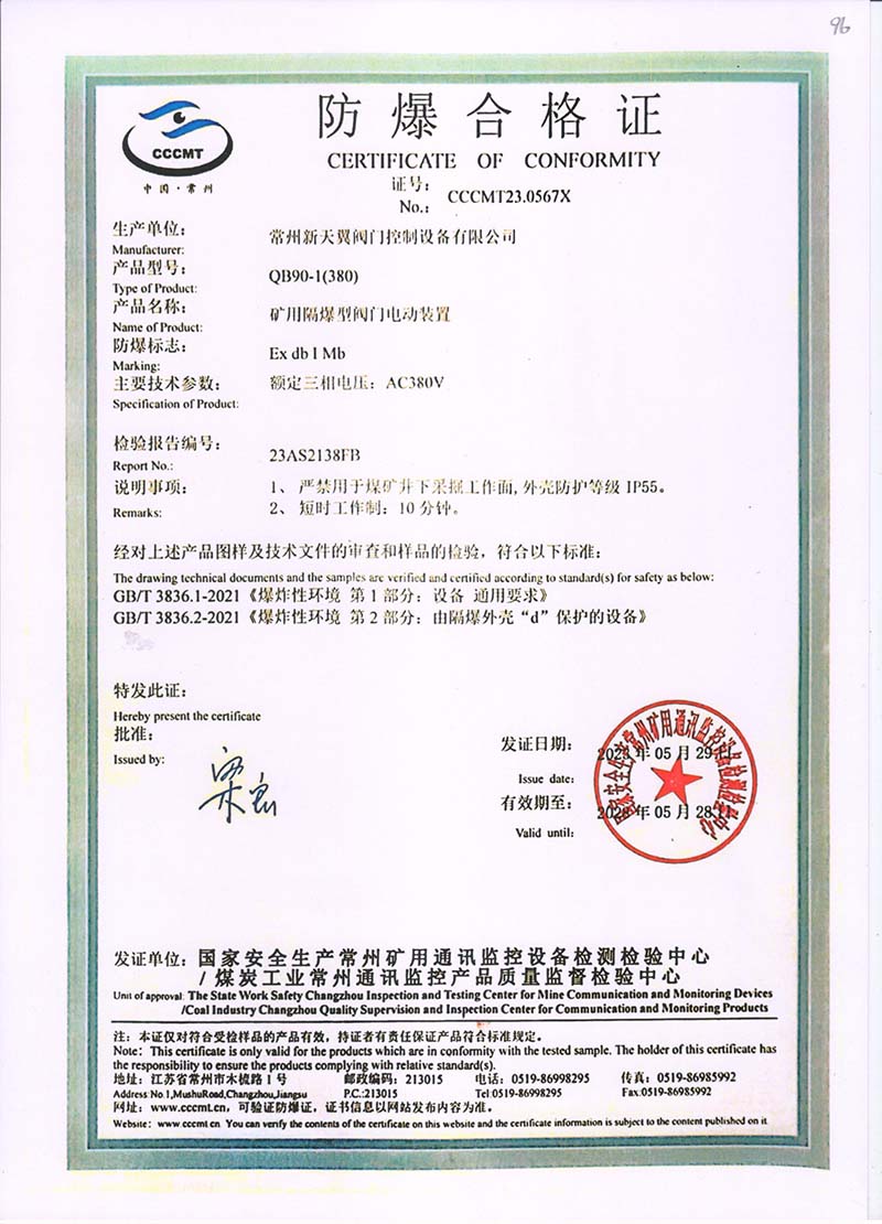 隔爆型QB QBZ QBT 220380中國國家強(qiáng)制性產(chǎn)品認(rèn)證證書107.2