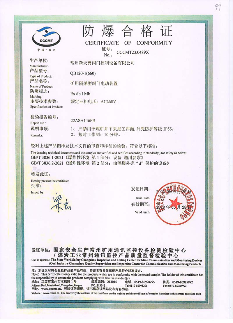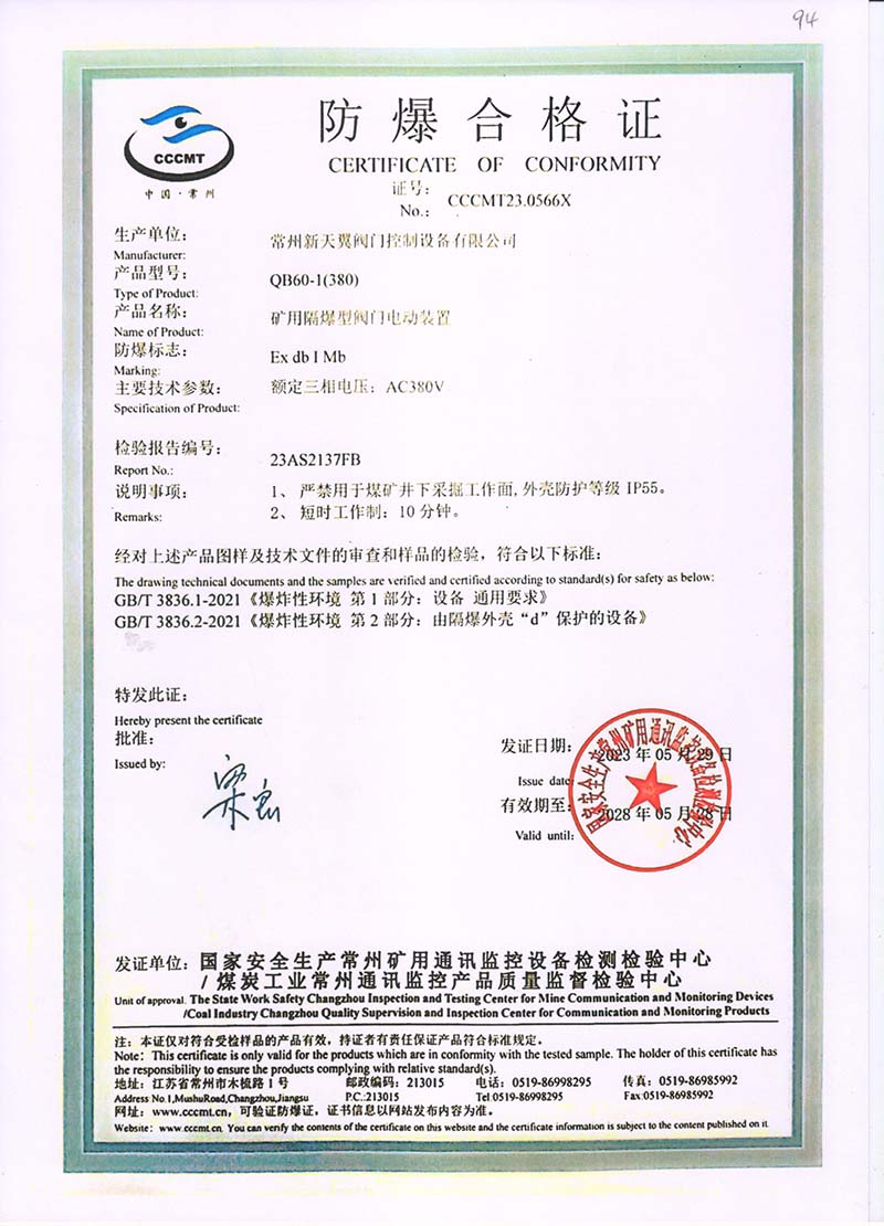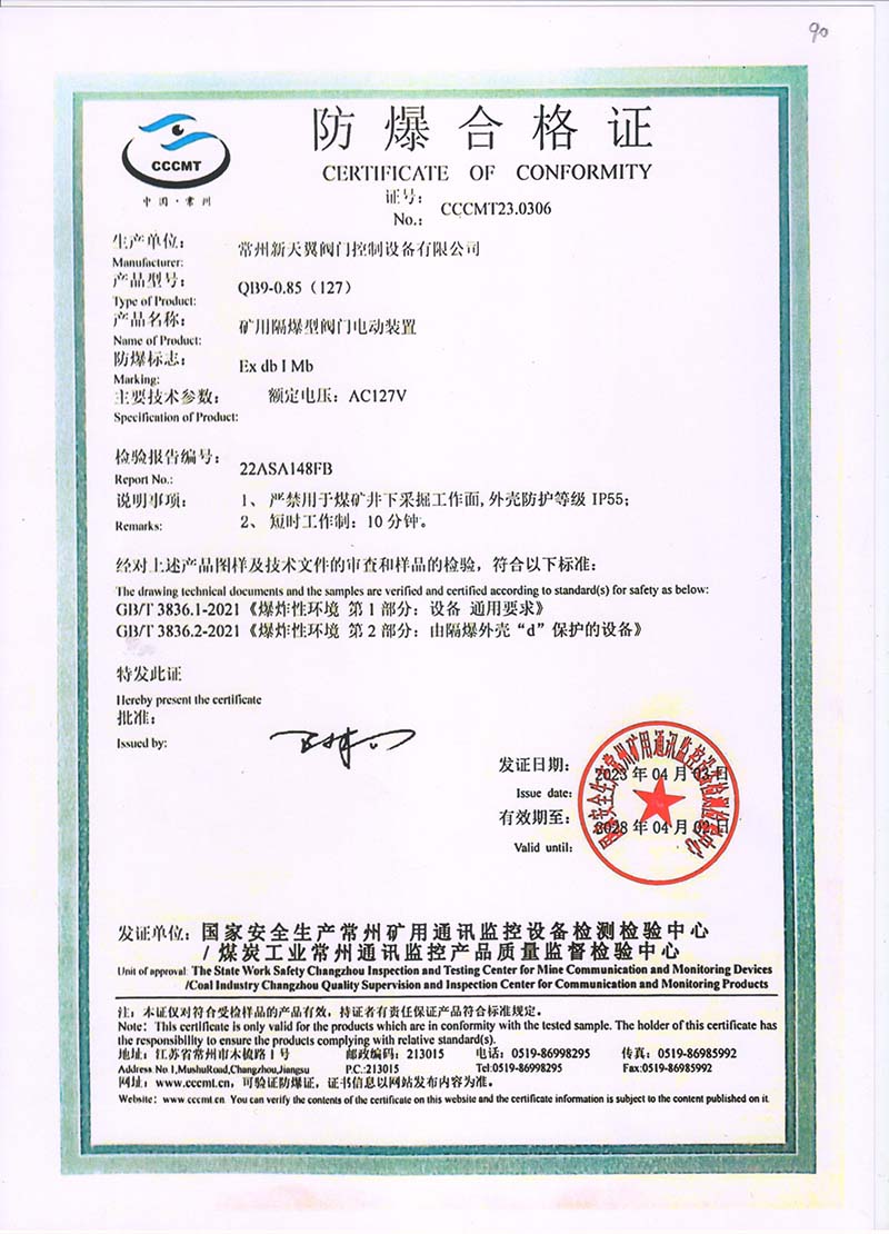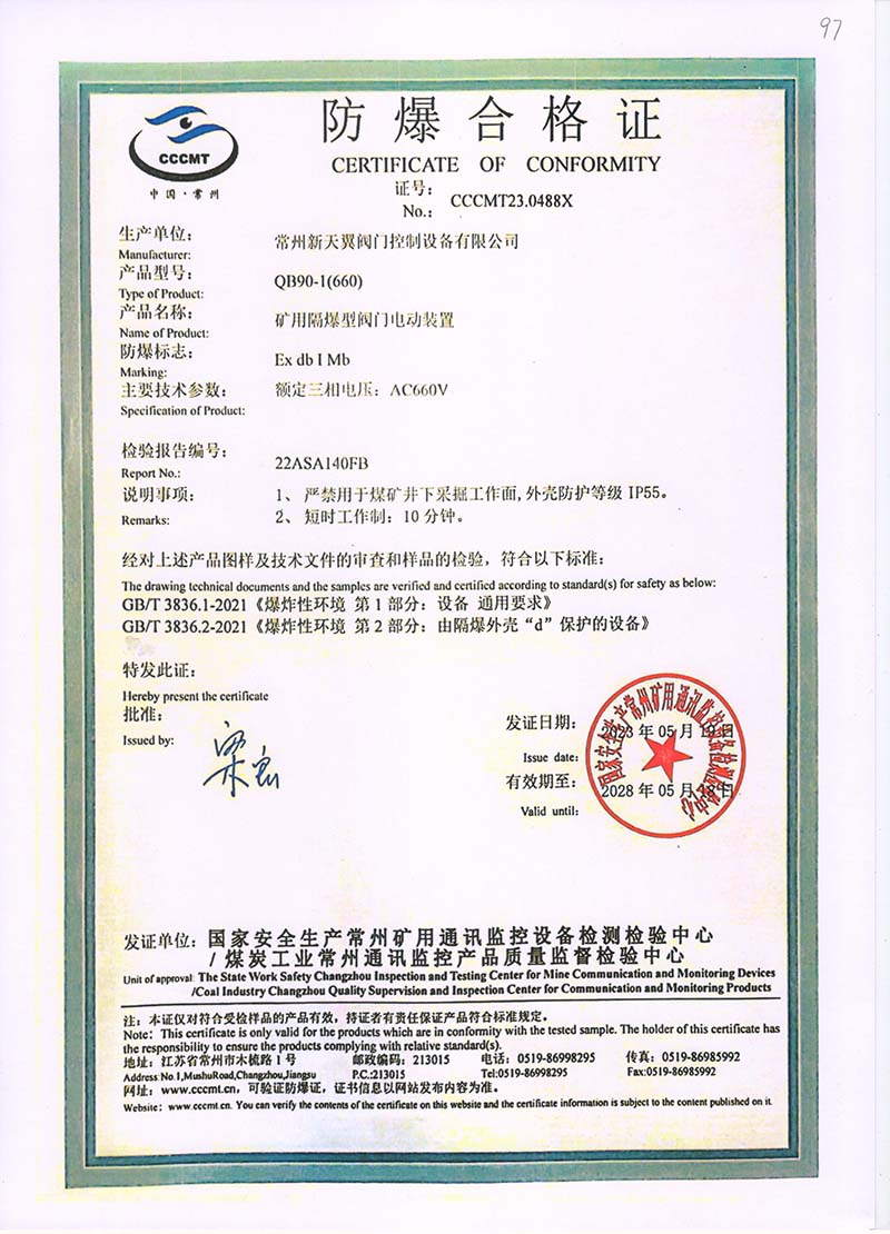 礦用隔爆QB127V中國國家強(qiáng)制性產(chǎn)品認(rèn)證證書105.2