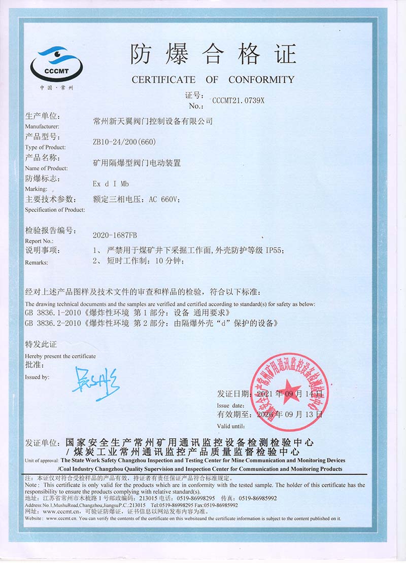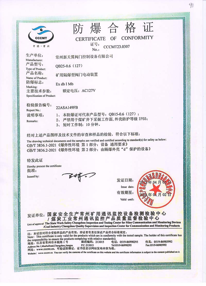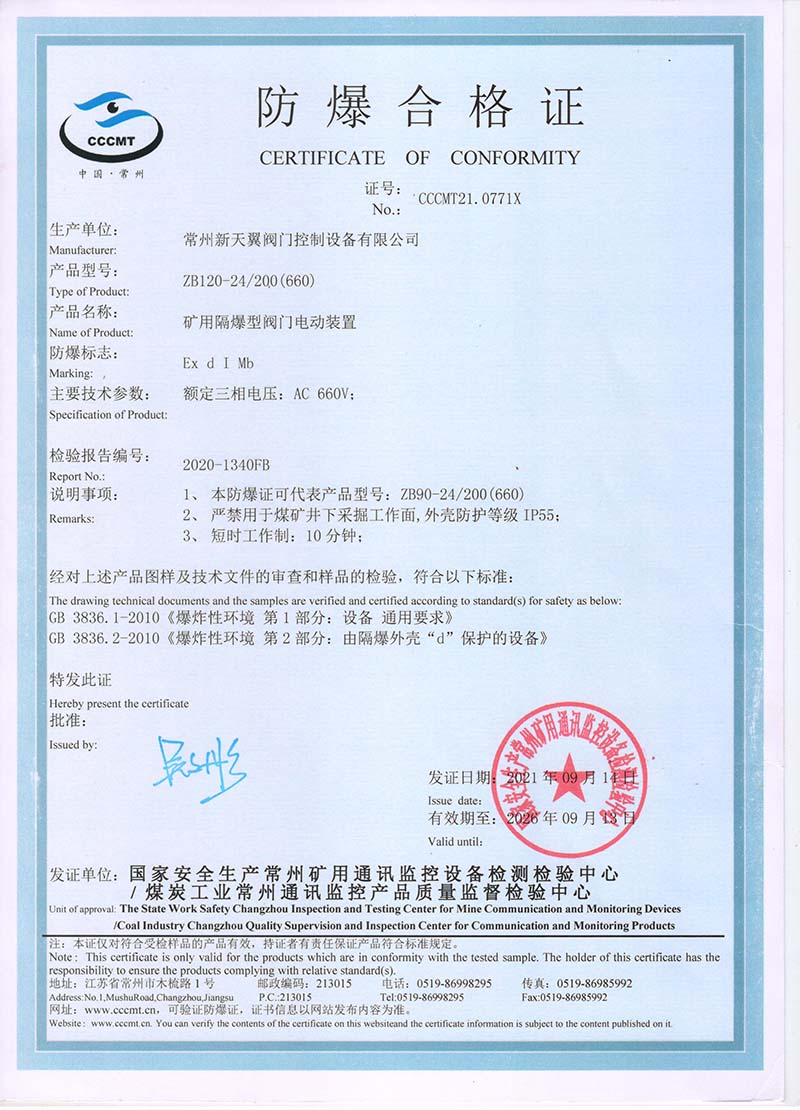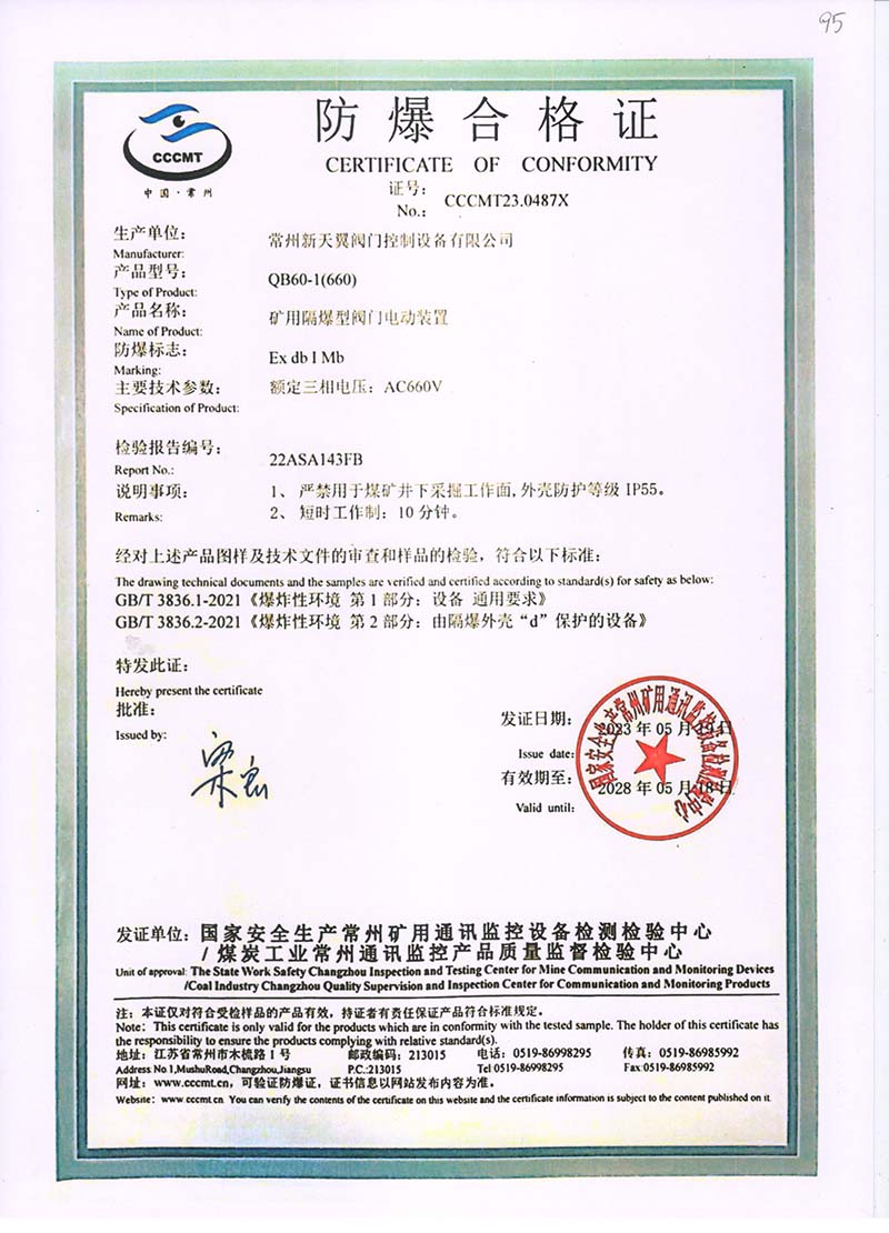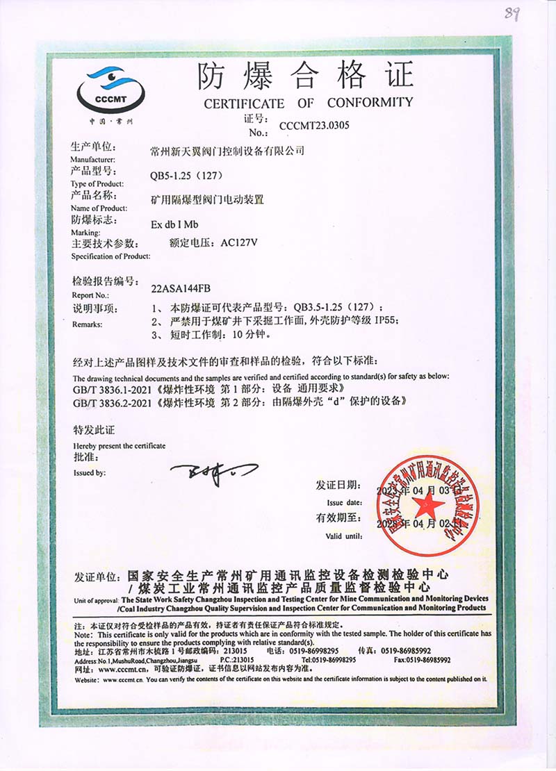 礦用隔爆QB127V中國國家強(qiáng)制性產(chǎn)品認(rèn)證證書105.2