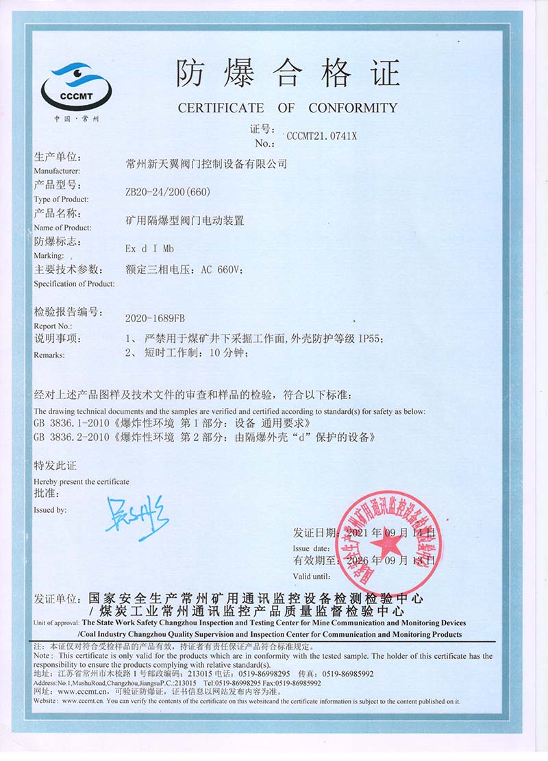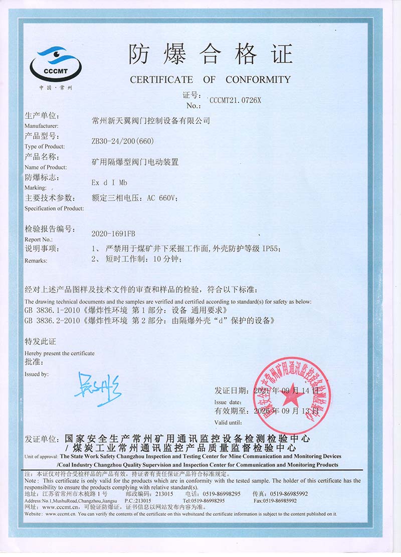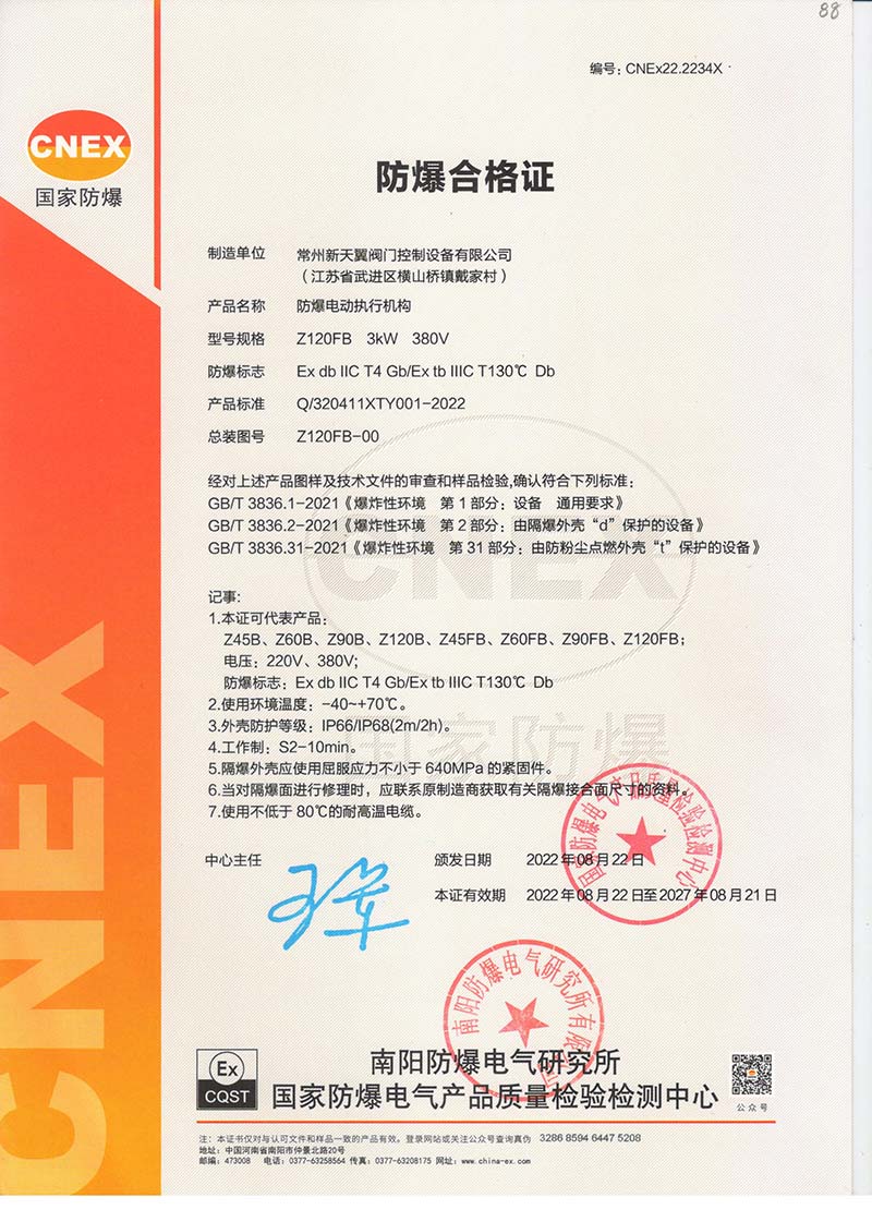 防爆Z10B Z10FB國家強(qiáng)制性產(chǎn)品認(rèn)證CT4證書109.2