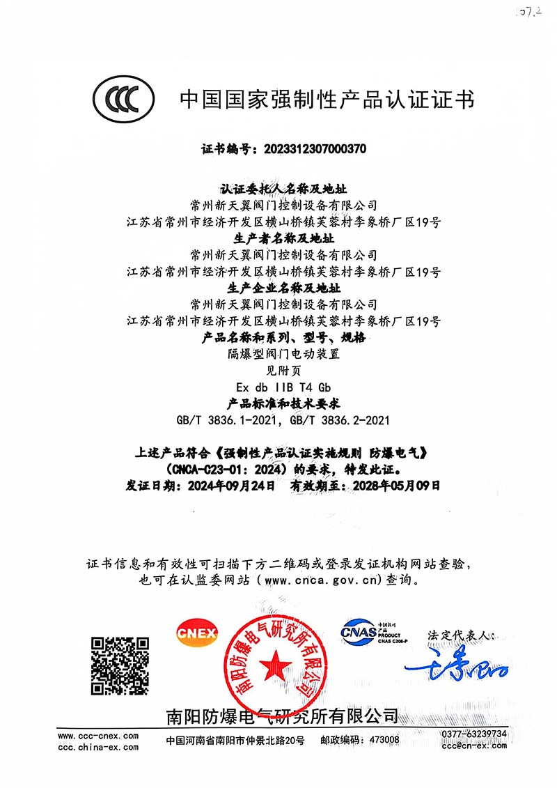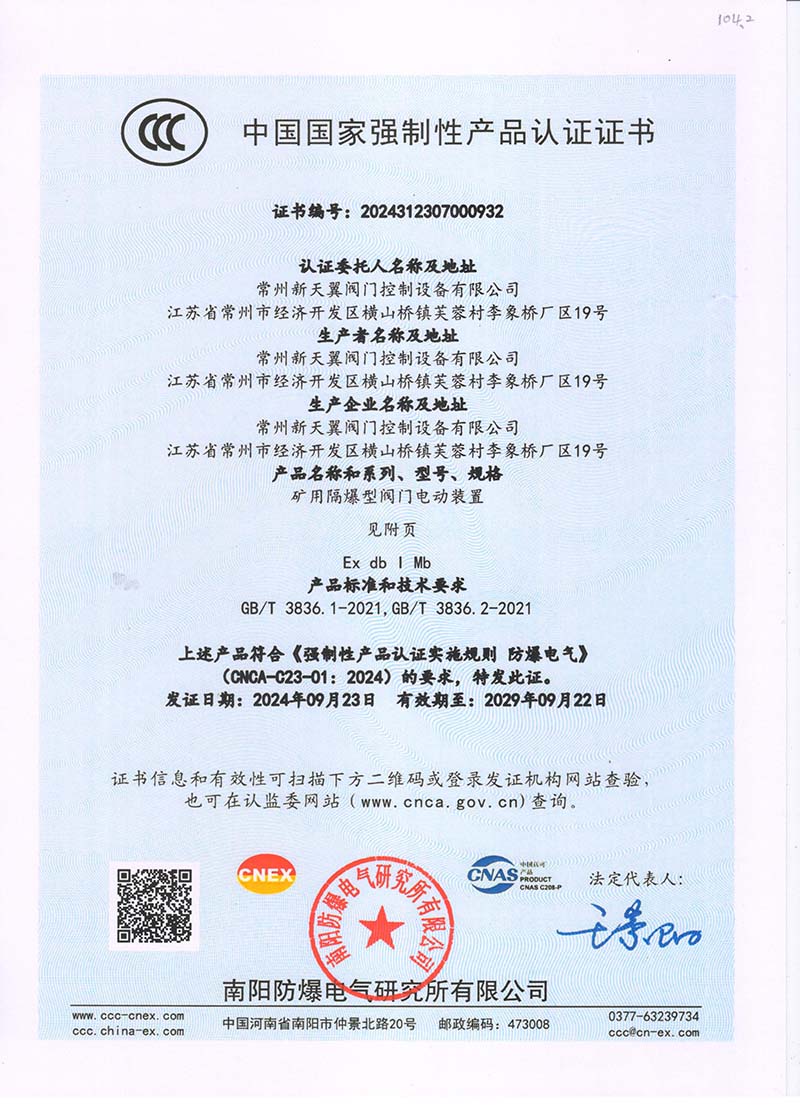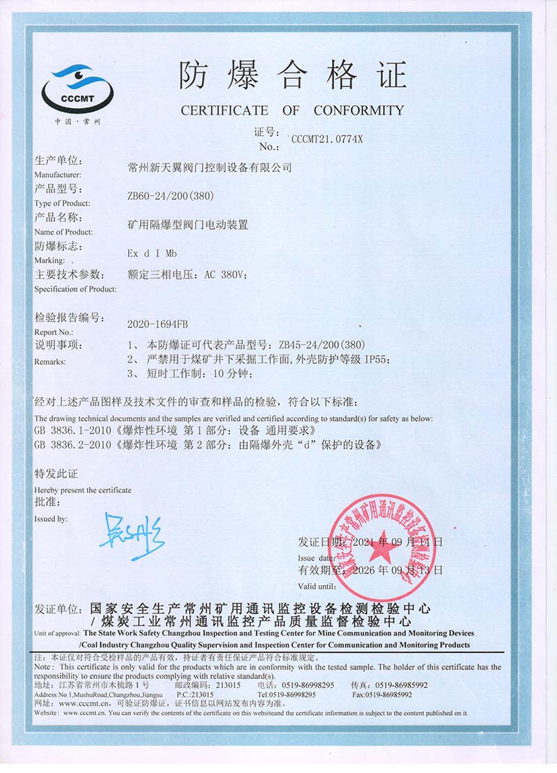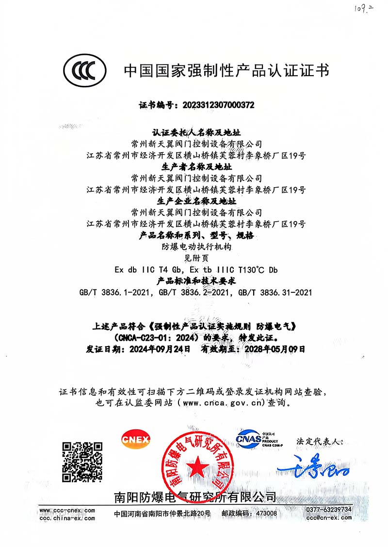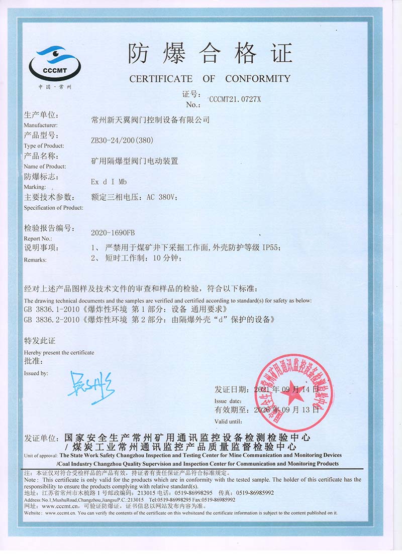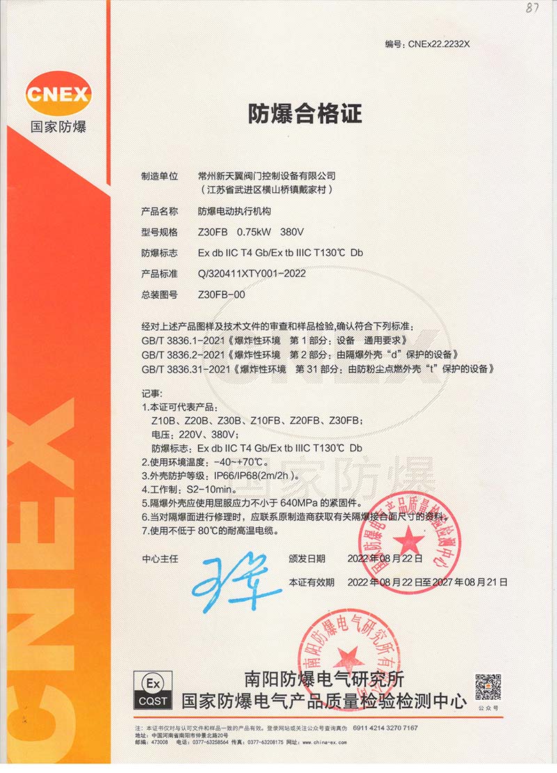 防爆Z10B Z10FB國家強(qiáng)制性產(chǎn)品認(rèn)證CT4證書109.1