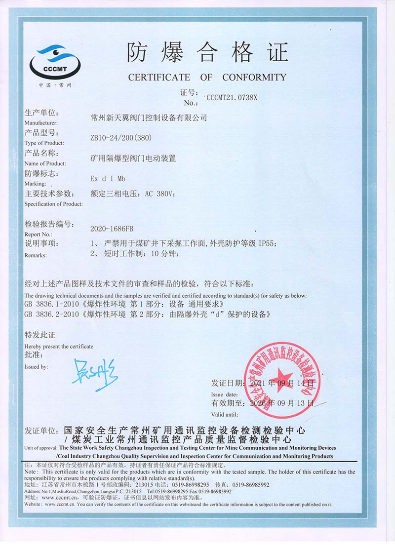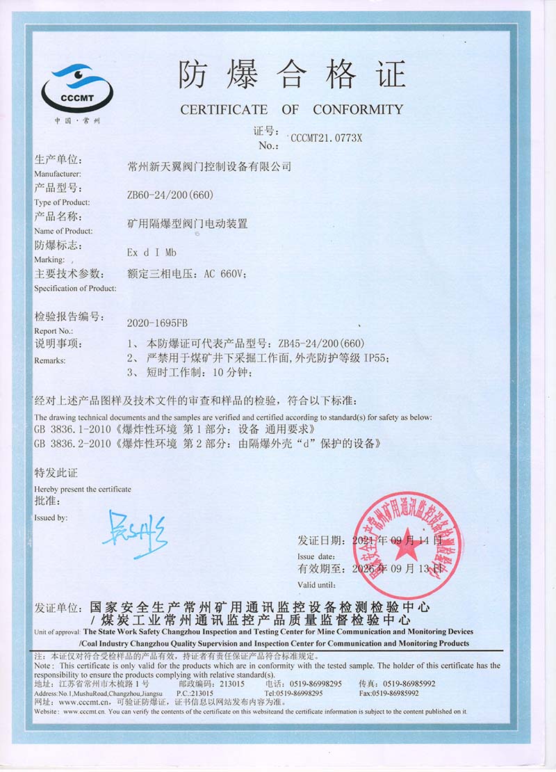 防爆Z10B Z10FB中國國家強(qiáng)制性產(chǎn)品認(rèn)證證書109.1