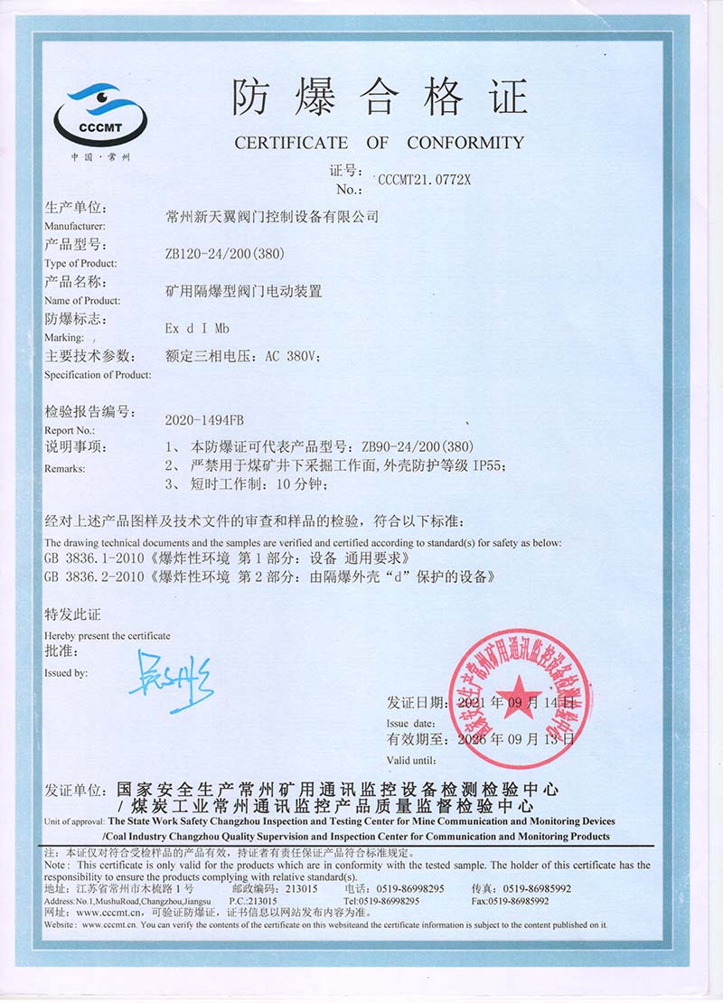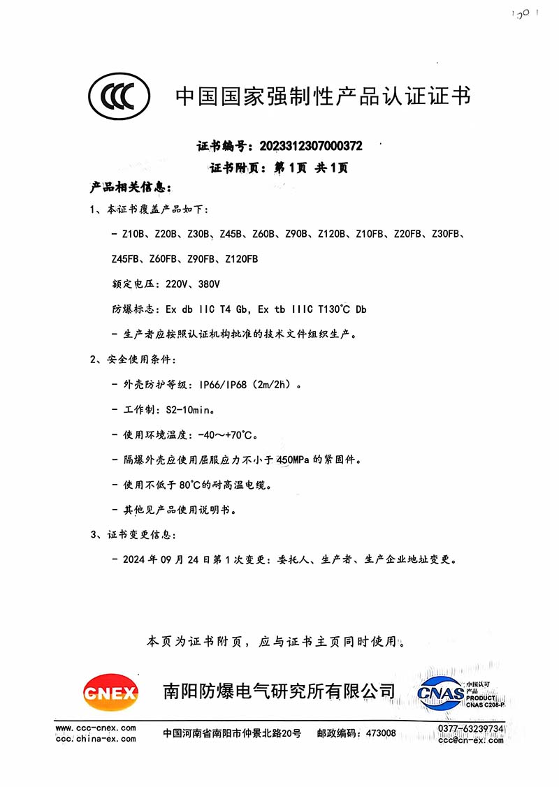 防爆Z10B Z10FB中國國家強(qiáng)制性產(chǎn)品認(rèn)證證書109.2