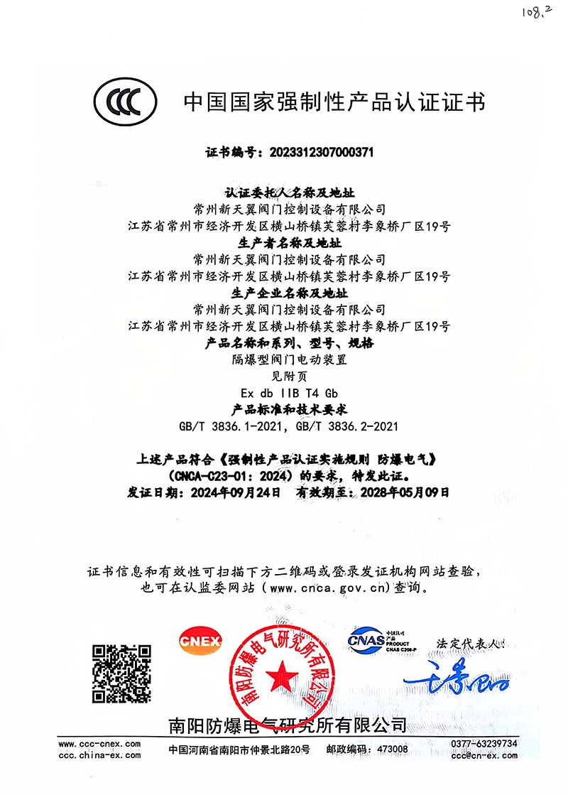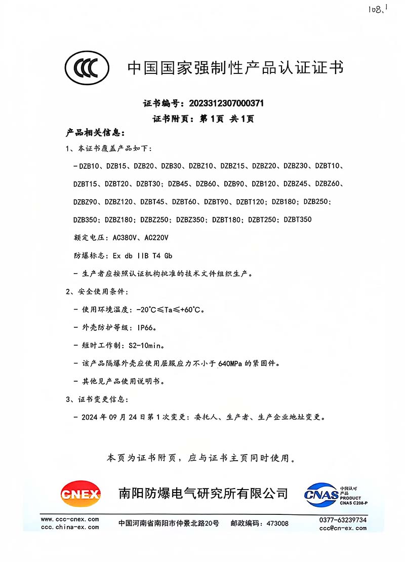 隔爆型DZB 中國國家強(qiáng)制性產(chǎn)品認(rèn)證證書108.1