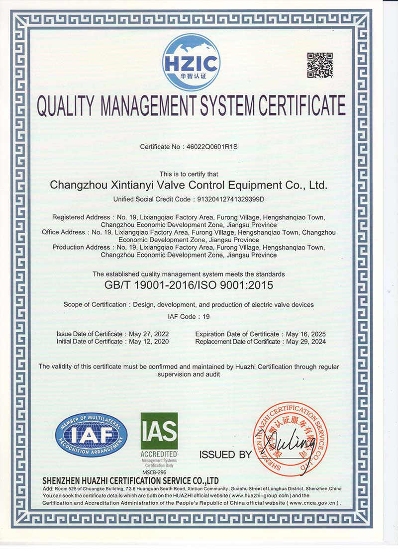 CHANGZHOU XINTIANYI VALVE CONTROL EQUIPMENT CO., LTD